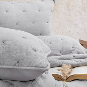 Crafted from a special ultra-soft material with a smooth, elegant drape. The quilted double-face design features delicate hand-stitched woven patterns and a resilient fiber filling that delivers plush softness, durability, and long-lasting comfort. Available in five trendy colors to suit a wide range of bedroom décor styles.