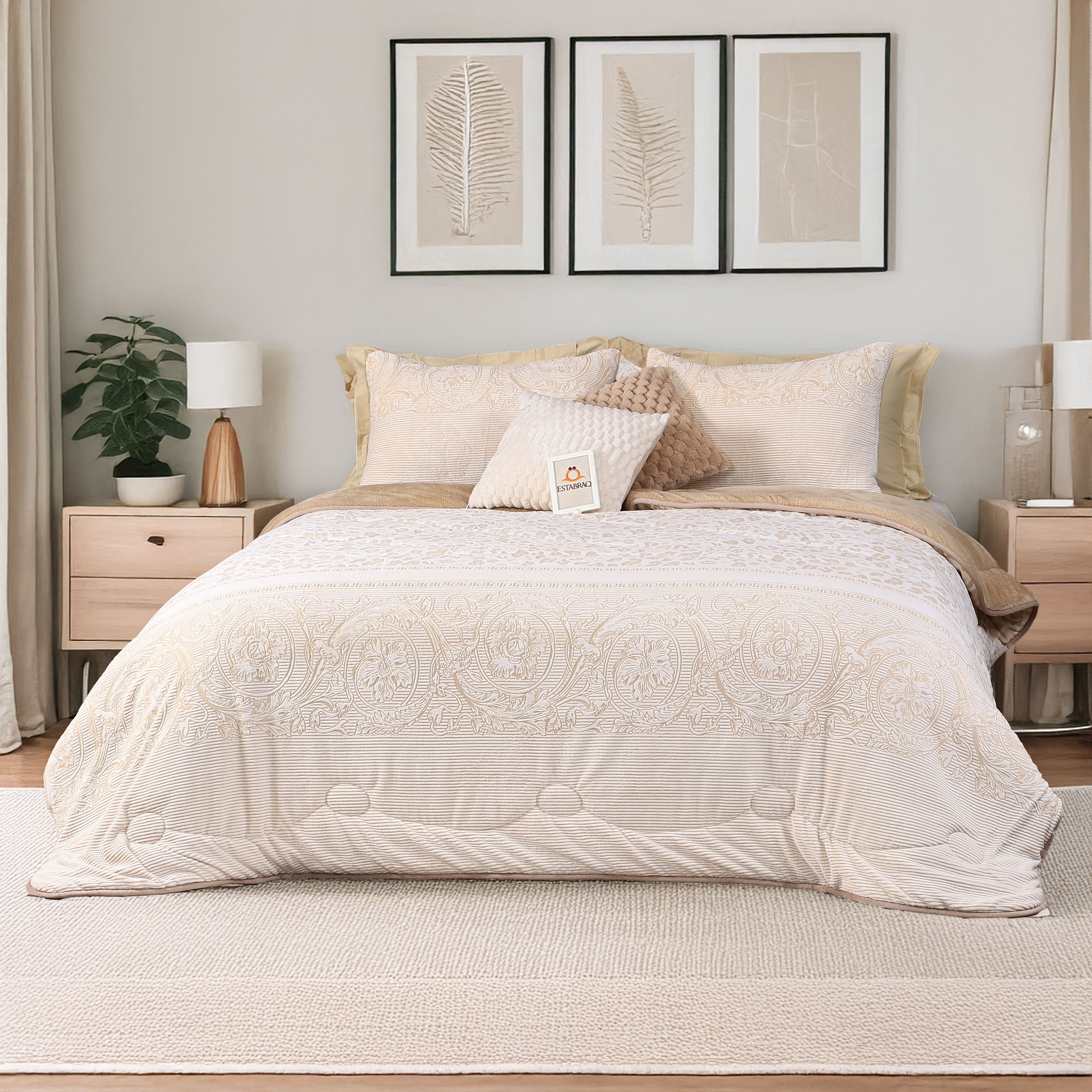 Embrace winter luxury with our Tiger Comforter, a 240x260 King-size masterpiece designed for ultimate comfort. Featuring an exquisite tiger-inspired pattern, this premium comforter combines soft, sumptuous fabric with sophisticated aesthetics. Perfect for cold nights, its superior insulation keeps you warm while the elegant design elevates your bedroom décor. Experience the perfect blend of warmth, style, and indulgence—your sanctuary awaits.